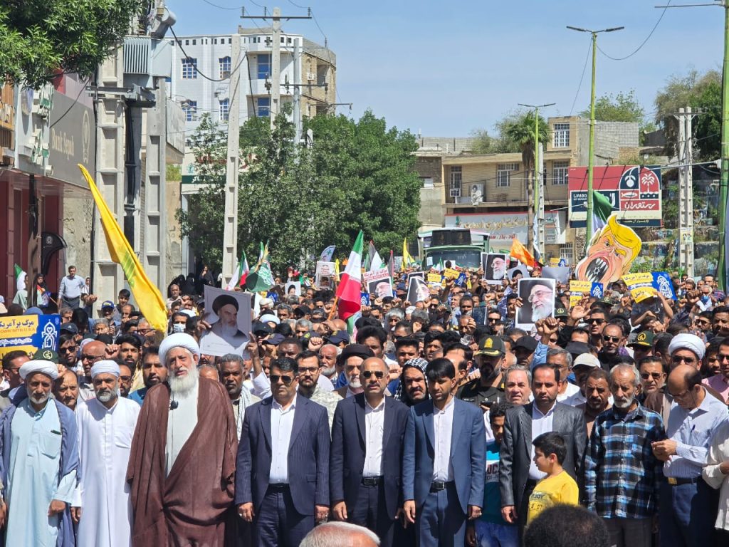 به گزارش پایگاه خبری میناب جنوب، راهپیمایی روز قدس همزمان با سراسر کشور با حضور گسترده گروههای مختلف مردم در شهرستان میناب با شعار “مرگ بر اسرائیل”و “مرگ بر آمریکا” برای رساندن فریاد مظلومیت مردم فلسطین به گوش جهانیان آغاز شد.