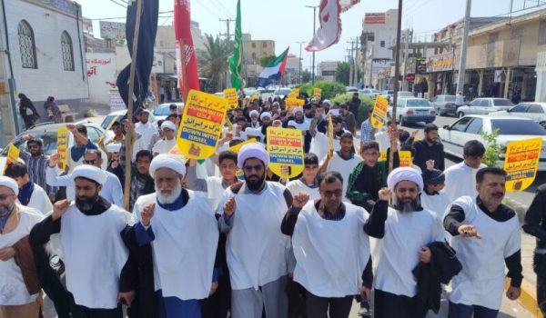 میناب -راهپیمایی روحانیون و طلاب کفن پوش در محکوم کردن جنایت اسرائیل و ترور شهید سید حسن نصرالله دبیرکل حزب الله لبنان محکوم کردند.